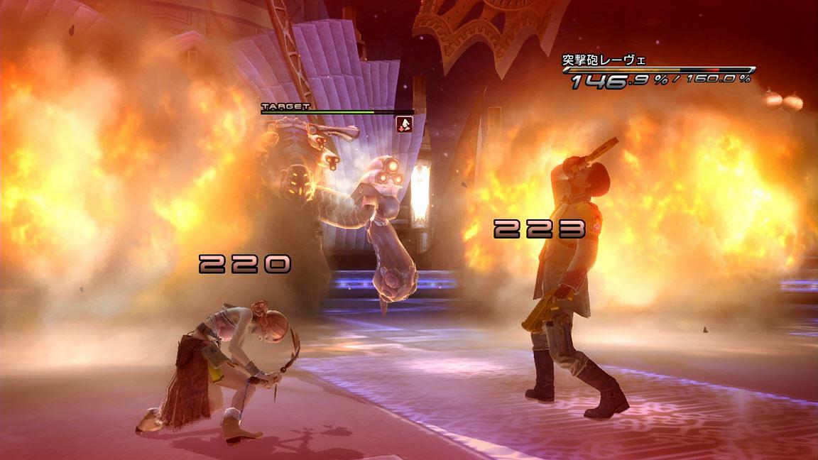 …まず、序盤は適当に回復しながらブレイクを狙っていけば良いため省略するとして、その後のレールキャノンのモードである。この最中は、敵が「レールキャノン」を実行するまでの間にブレイクを決めなければならず、素早い行動が求められる…と思いきや、実は「ATK+BLA」でずっと攻撃しているだけでブレイクが間に合ってしまう。その場合、敵はブレイク成功直後に「主砲装填完了」を宣言するため、その文字が見えたら「BLA+BLA」にチェンジすれば、ヴァニラが「エアロ」でレールキャノンを妨害してくれる。以上、「レールキャノン」のキャンセルについては、これで100%OKである。