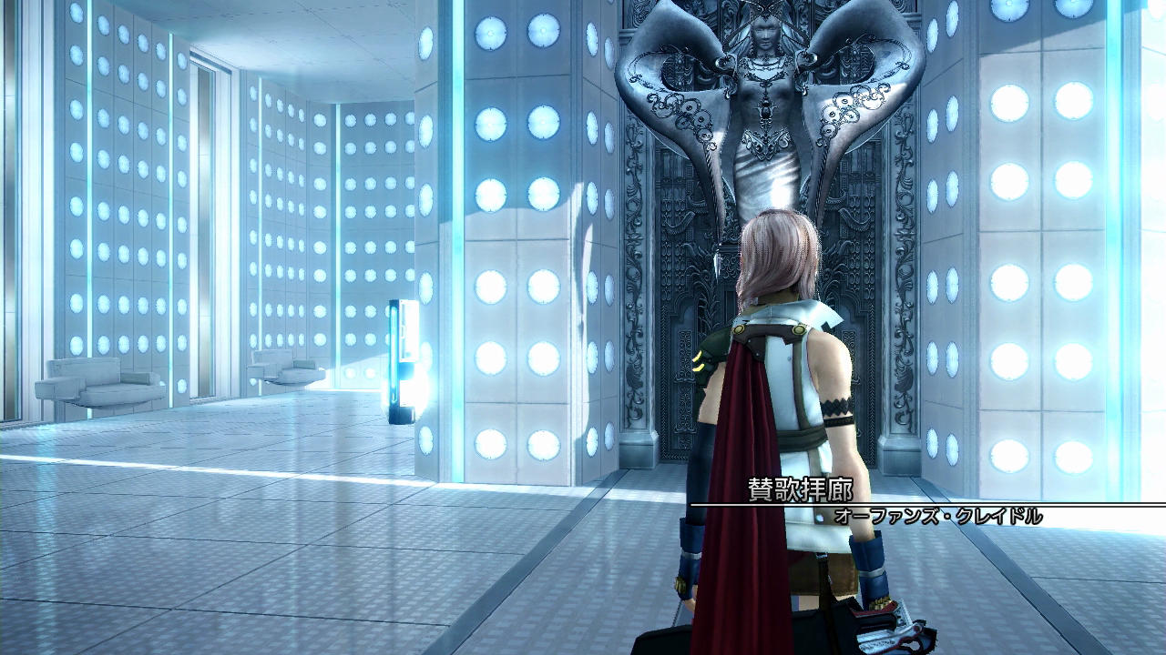 …また、第1層・第2層・第3層は、それぞれ一度クリアすると、再度探索をすることはできなくなる。FF13最高峰の強敵が登場するこのダンジョンは、腕試しの地として最適であり、第3層の中ボス復活戦などはCP稼ぎにも使えるだけに、残念としか言いようがない。ここまで来ると、PS3単体からマルチプラットフォームに変更されたことによる容量問題も関係無いはずであるが…探索できなくなる理由は不明である。