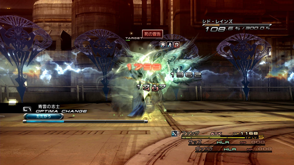 …さて、こいつに関しては、少し前に「クリスタリウムなしクリアー.」のほうでも触ったとあって、皆さまなかなかに造詣の深いキャラクターとなっていることであろう。その特徴は、後半部になると各種ステータスを絡めた強烈な連続攻撃を使用してくることであり、一定ルーチンの「セラフィックレイ」でステータス効果が全て解除されてしまうことも相まって、1人プレイでの戦闘は至難を極める。「流れの中で必要なステータスを発生させて素早く攻撃に移る」という、FF13シリーズの高度な戦闘で必須となる戦法を体感できるバトルだと言えよう。