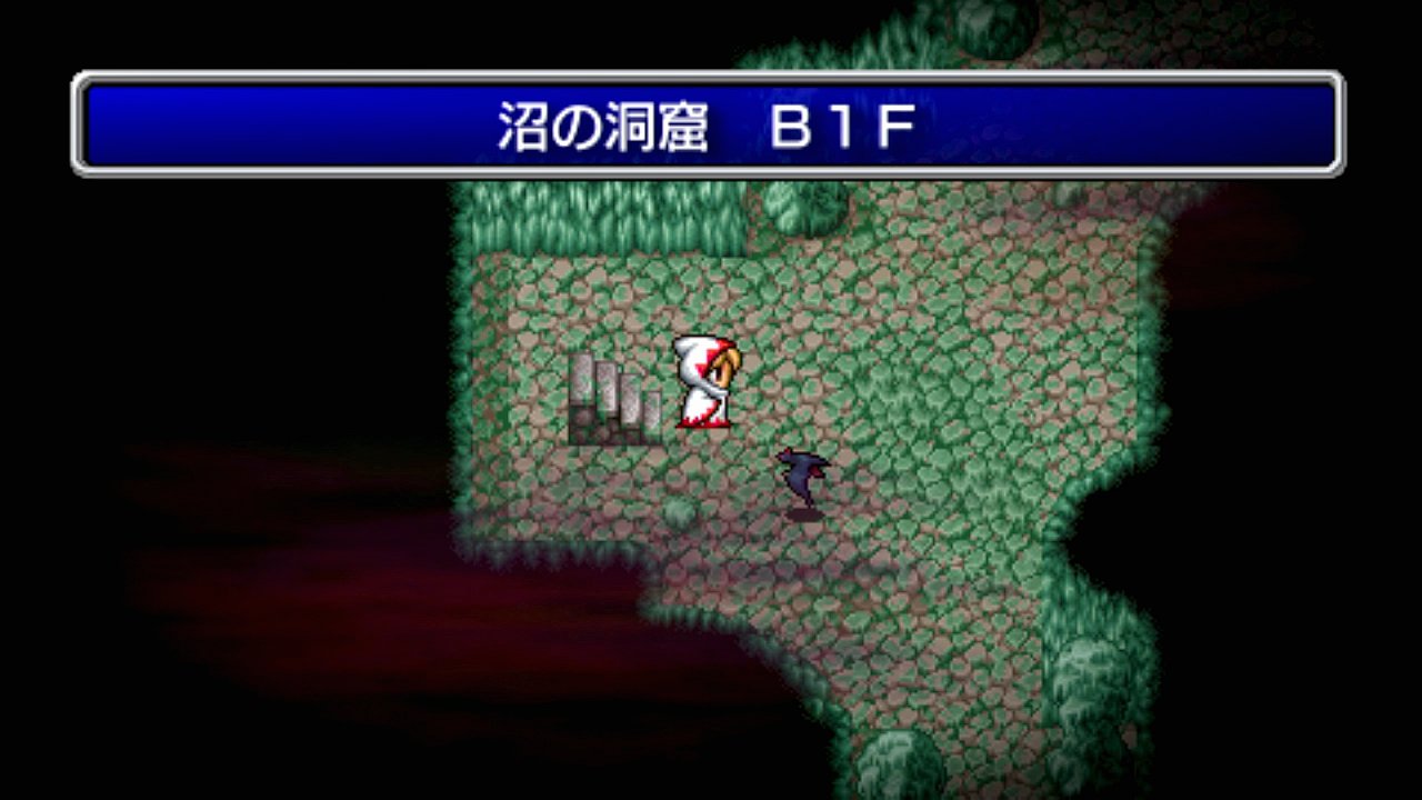 さて。沼の洞窟でも、基本的には、GBA版以降にてどこでもセーブが可能となったため、セーブ&リセット法により、ノーエンカウントで進んでいける。そして、ダンジョン内は広大だが、ワールドマップ等と比べてエンカウント率は低めとなっており、そこまで攻略に支障を感じることもない。