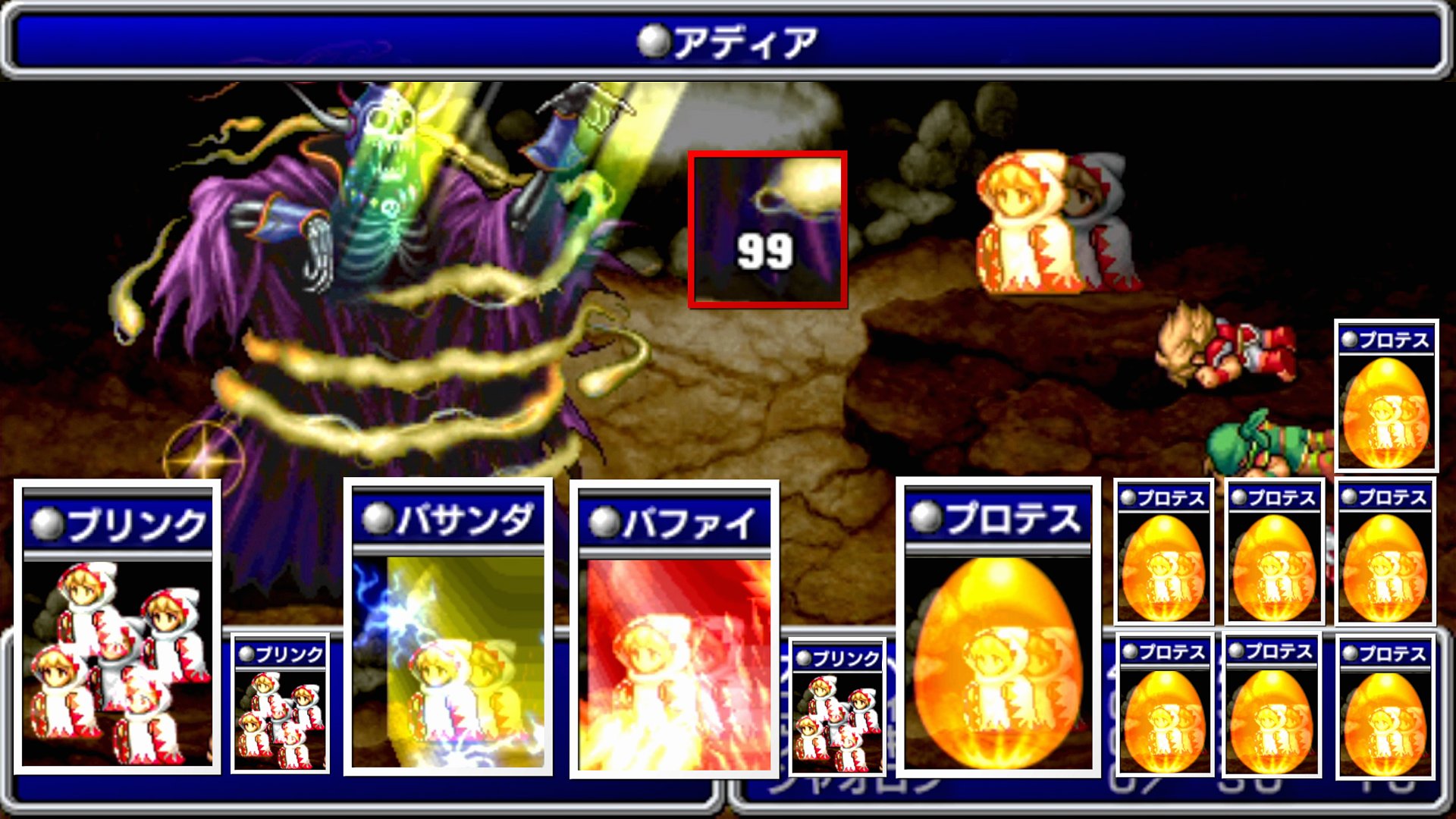 …と、そんな感じのバトルであり、敵は多彩な技を使ってくるので、確かに強敵と言える。実際、「ブリンク」「バサンダ」「バファイ」「プロテス」「アディア」と、白魔術師の強みをこれでもかと活かしており、どれか一つでも欠けていたら、攻略が極めて困難となっていた可能性もある。