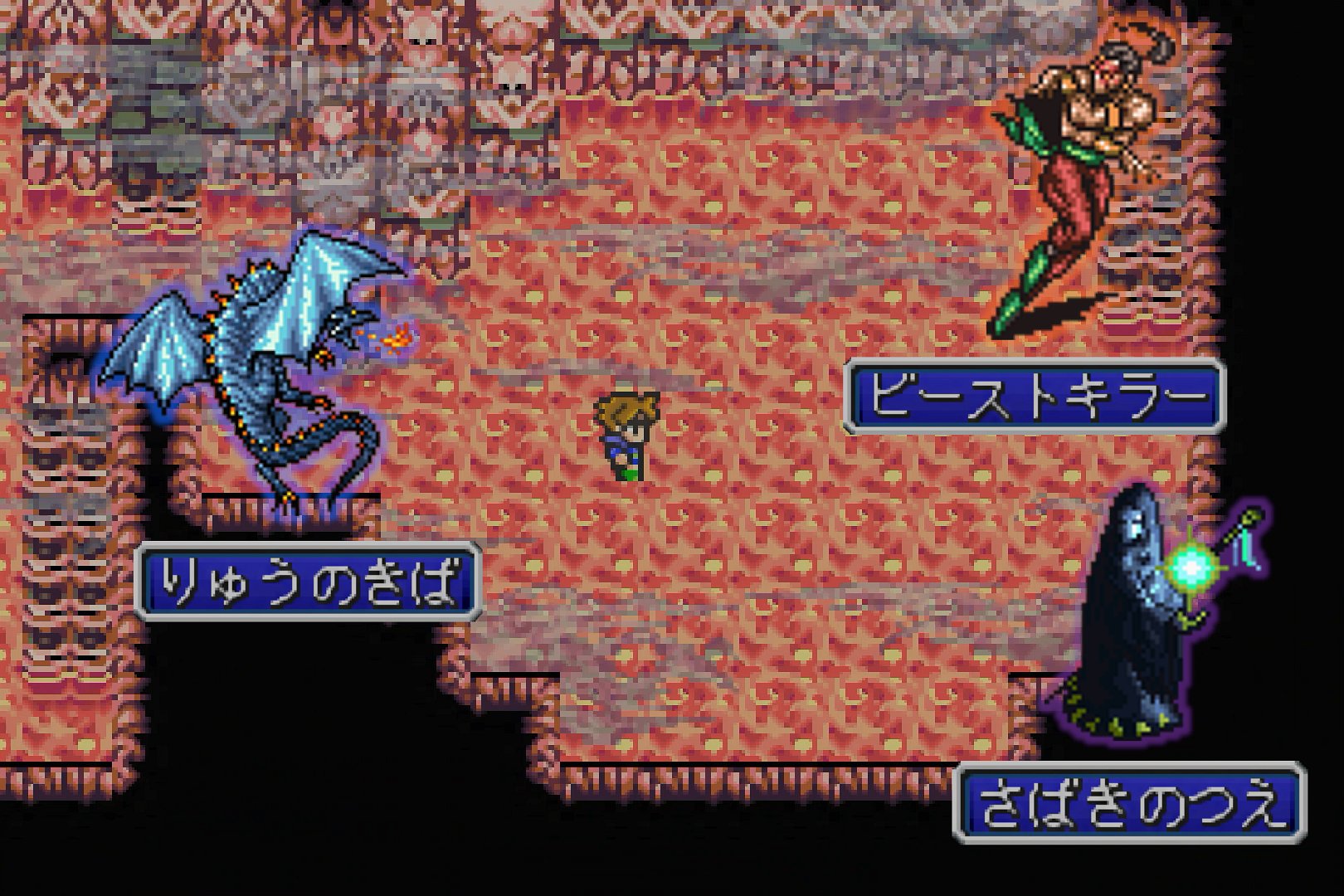 …さて、コイツは、戦闘前の珍妙な言葉遣いが話題となっている。内容自体は、“自分に勝ったら仲間になってやる”という、ゲーム・漫画によくあるアレなのであるが、SFC版とPS版では、「さあて…力を試させてもらう