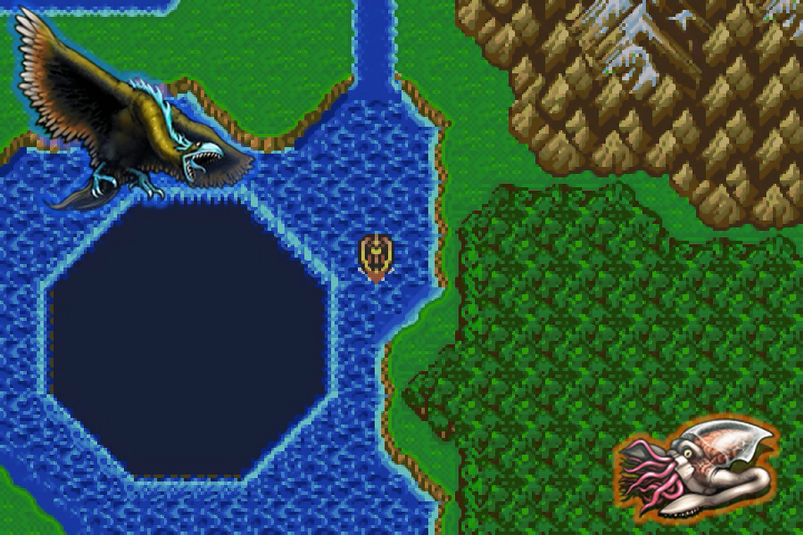 …さて、そもそもの話として、FF5の第3世界では、海上を移動する必要は全く無い。そもそも、船と飛空艇が同時に手に入るうえ、飛空艇の着陸先として水上を選択することで、どこでも自由に船へと変形できる。フォークタワーのクリア後、潜水艦の気持ちになりたくなったときも、同様に、目的地の上で飛空艇から船になり、すぐに潜航をして、必要ならその後に目的地を探せば良い。以上の理由により、海上を移動して敵に襲われる必然性はゼロなのだ。