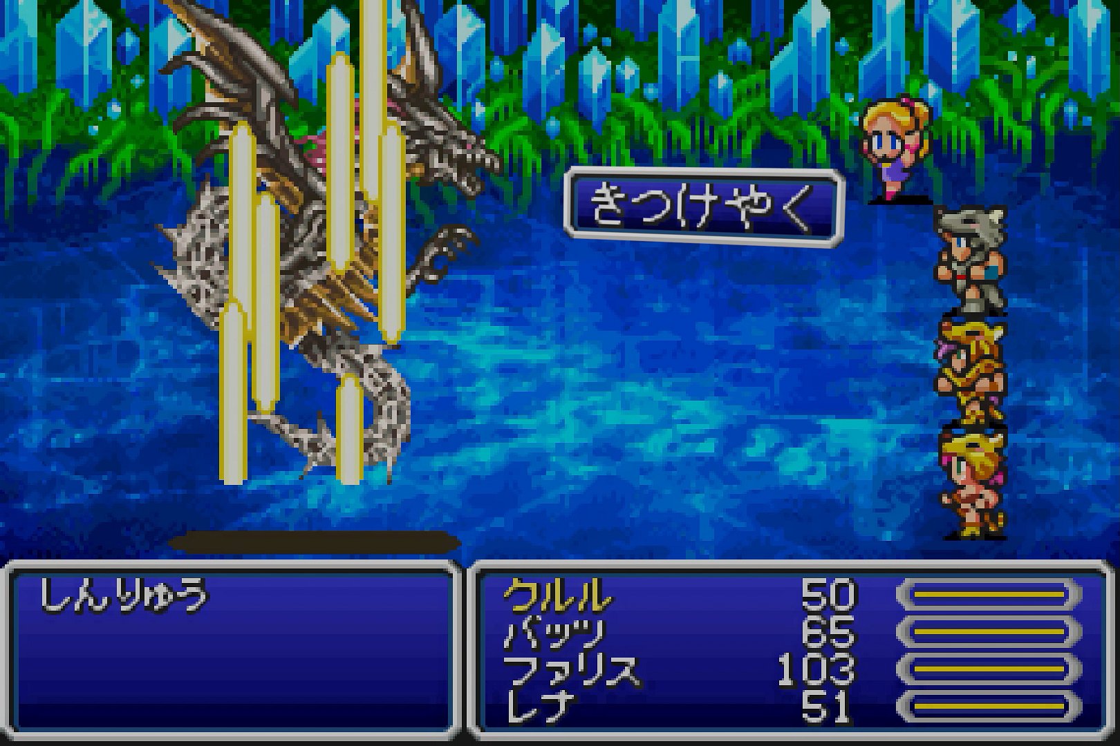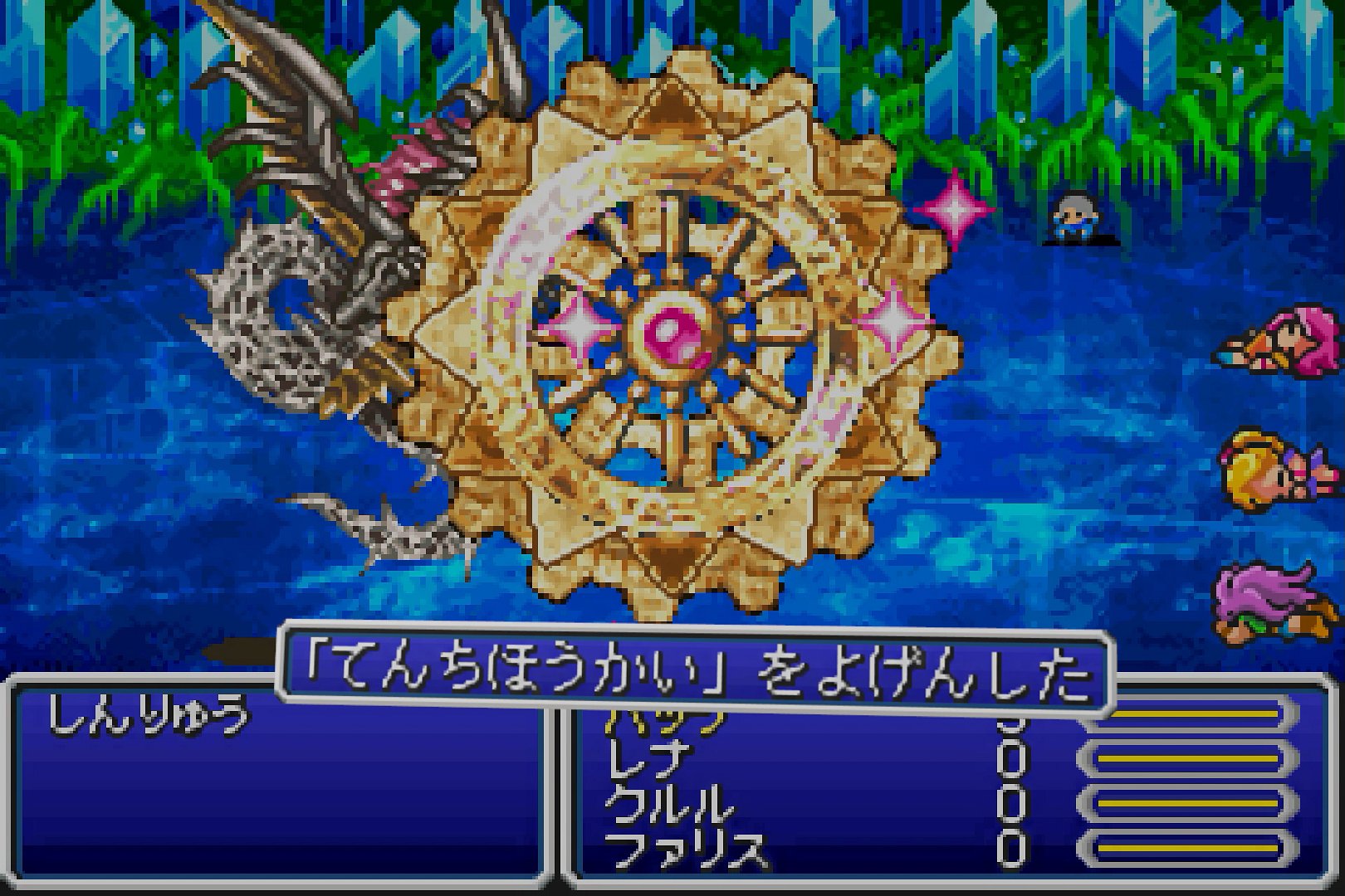 …やれ、私もそうしたのだが、もし、あなたの身の回りで、FF5を初プレイする人が居たら、絶対にこの神竜のことだけは、ネタバレをしてはいけない。ここで激流葬をされ、ポカーンとするのも、また大切な、FF5の思い出となるからだ。