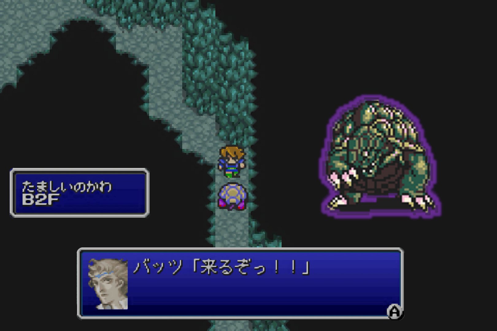 というわけで。最初の仕掛けは、ベヒーモスを「とらえる」で捕獲することである。実は、オリジナル版のFF5には、「クーザー」や「キングベヒーモス」は居たが、「ベヒーモス」というそのものの敵は登場していなかったので、晴れて裏ダンジョンで初登場を果たしたということになる。