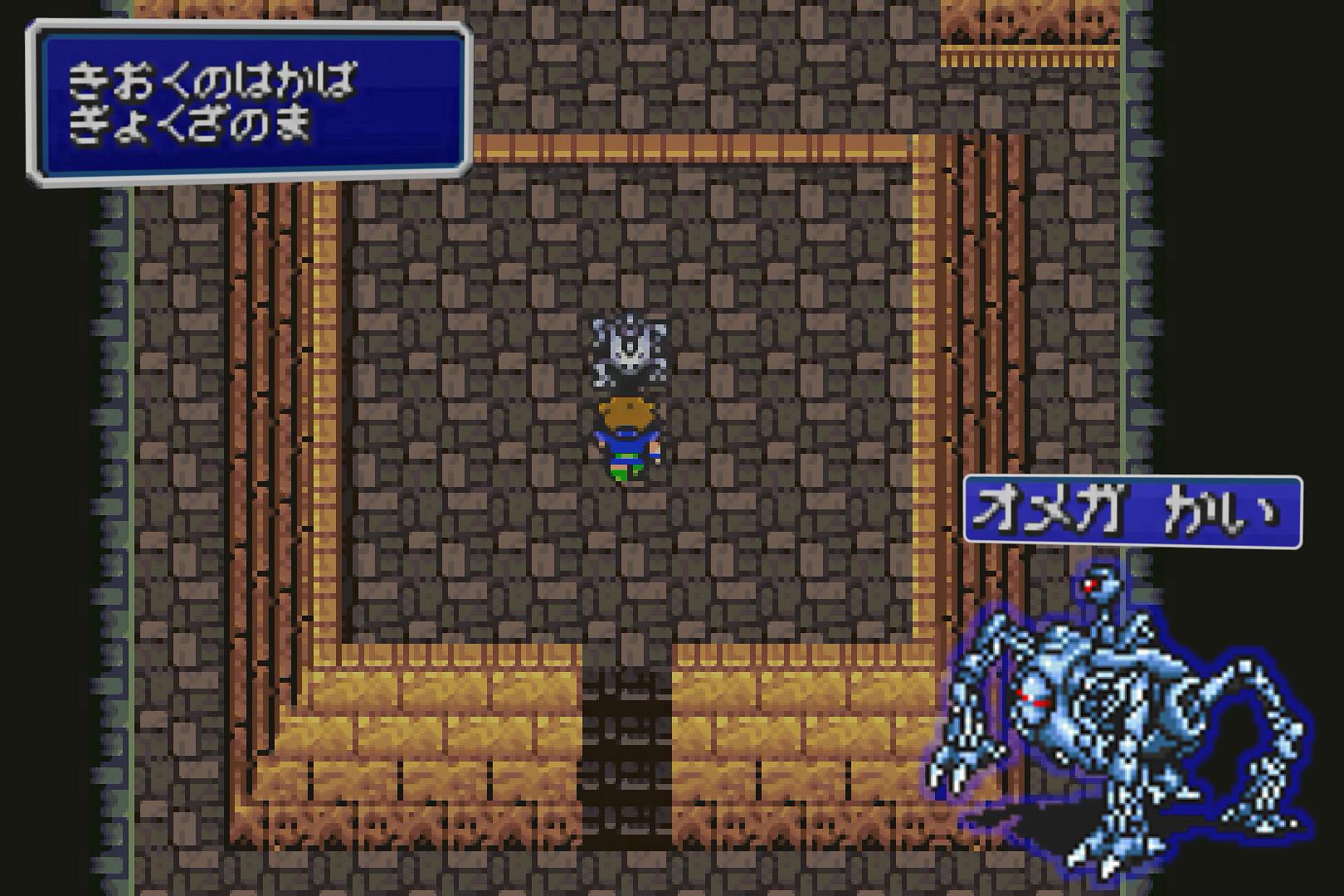 余談だが、元気に歩き回っていたり、元気に走り回っていたりと、何かとアクティブなオメガ原種であったが、オメガ改のほうは、「記憶の墓場/玉座の間」の中心部に蟄居している。近付いても戦闘にならず、話しかけると「襲いかかってきた!」と表示されて、戦闘が開始される。
