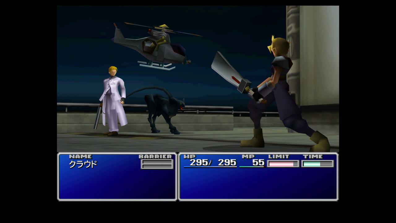 …さて、このバトルでは、ルーファウスは「ダークネイション」という暗黒次元な名前の犬を連れており、バトルは1vs2となる。ただ、先程の、ミスをして後半エアリス1人になってしまったエレベーターでの戦いとは異なり、本バトルは最初からクラウド1人が想定されているため、難易度は高くない。