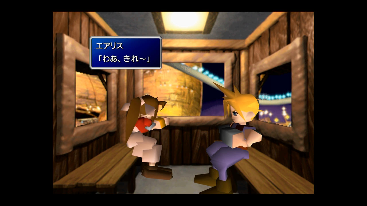 その後は、ロープウェイが故障をして、ゴールドソーサーのホテルに一晩泊まることになる。ここでは、有名な「デートイベント」が発生する。その相手は、隠しパラメーターである“好感度”によって、エアリス・ティファ・ユフィ・バレットのいずれかから決まるが、好感度の上がりやすさ・序盤の「デート1回」というセリフの回収・話す内容の重要性などの点から、エアリスとデートをするのが一般的に想定されている流れだと思われる。私のプレイでも、特に何も考えずに進めて、エアリスとデートをすることになった。