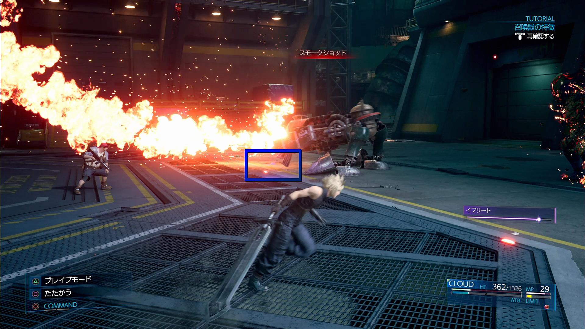 ――やれ。当初の私は、とにかく片方を速攻で倒すのが重要と信じ、まずは「凶斬り」を片方に当て、その後はイフリートの召喚を使っていった。しかし、このどちらも、クラウドが棒立ちになってHPを大きく削られてしまう。そして、イフリートなどは遊んでるのかというレベルの低火力で、全く役に立ってくれない。そう言えば、トップシークレッツで敵バハムートが登場した時にも、イフリートは回復要員にされてましたね…。