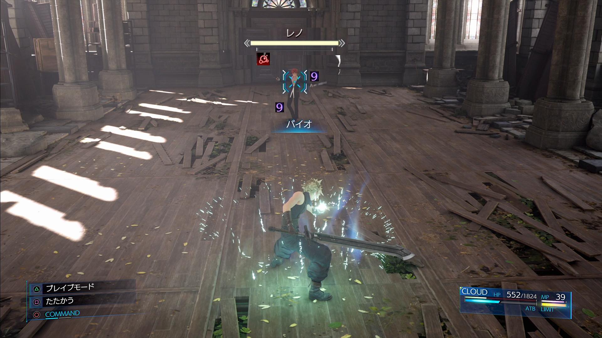 ボスである。本丸のレノは雑魚兵士たちを倒した後に出現するので、敗北した場合はセーブデーターからやり直す。レノを倒したのち、クラウドがLv16に上がり、エアリスがLv17で加入する。