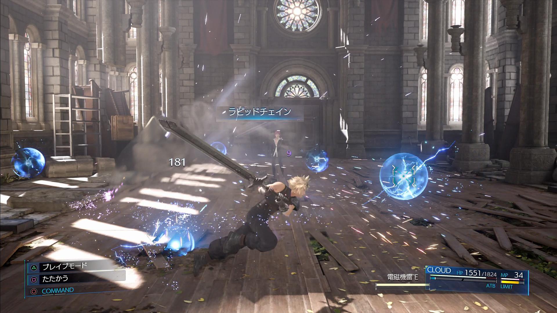 というわけで。この電撃はガードができないため、できる限り素早く破壊してレノ本体に取り掛かりたい。そのためにうってつけの特技は、「ラピッドチェイン」である。素早く移動しつつ3回連続攻撃をし、麻痺効果を受ける可能性を最小限にしながら、機雷を破壊していけるのだ。