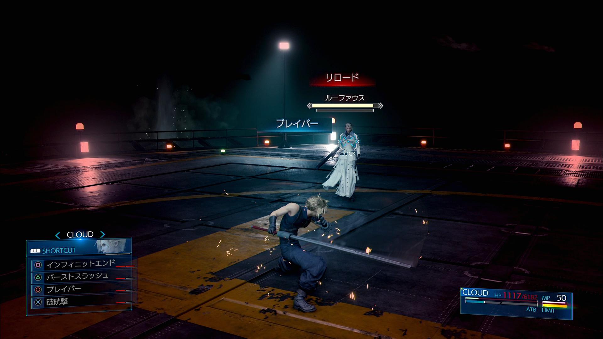 ――ということで。ルーファウス撃破後は、すぐ次の戦闘に進まずにリセットし、バレットとエアリスの装備をハンドレッドガンナー戦のものに整えてから、ルーファウスを倒していく。ノーダメージにこだわらなければ、第1段階と第2段階は「ラピッドチェイン」で連携を切りつつ殴り、第3段階は相手の攻撃を喰らってリミットゲージを溜め、「スリプル」で眠らせて「ブレイバー」でバーストし、リミット技を当てれば良い。これで、ハンドレッドガンナー戦でリスタートをしたとしても、大規模な変更を行わなくて良くなる。実際には、リスタート時に間違えて「連戦バトルの前からやり直す」を選ぶというFF13-2のラスボス連戦のようなミスをやらかして、ルーファウス戦からやり直すことのほうが多かったのであるが…。