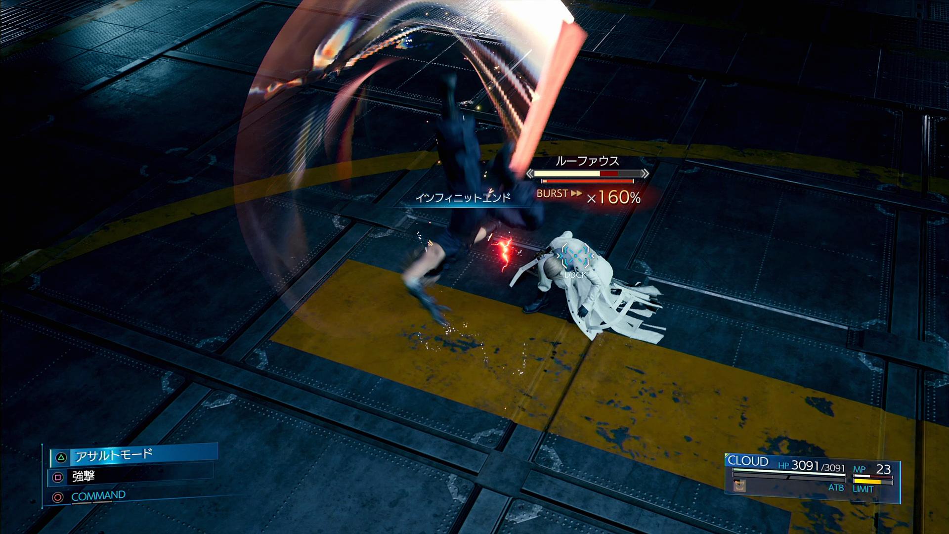 ――しかしながら、それでルーファウスが倒せないかというと、そういうことはなく、クラウドには大技の「インフィニットエンド」が存在する。これで2ゲージを消費することにより、ルーファウスに特大ダメージを与えて一気にHPをゼロにできる。叩き出すダメージは、驚異の9999である。