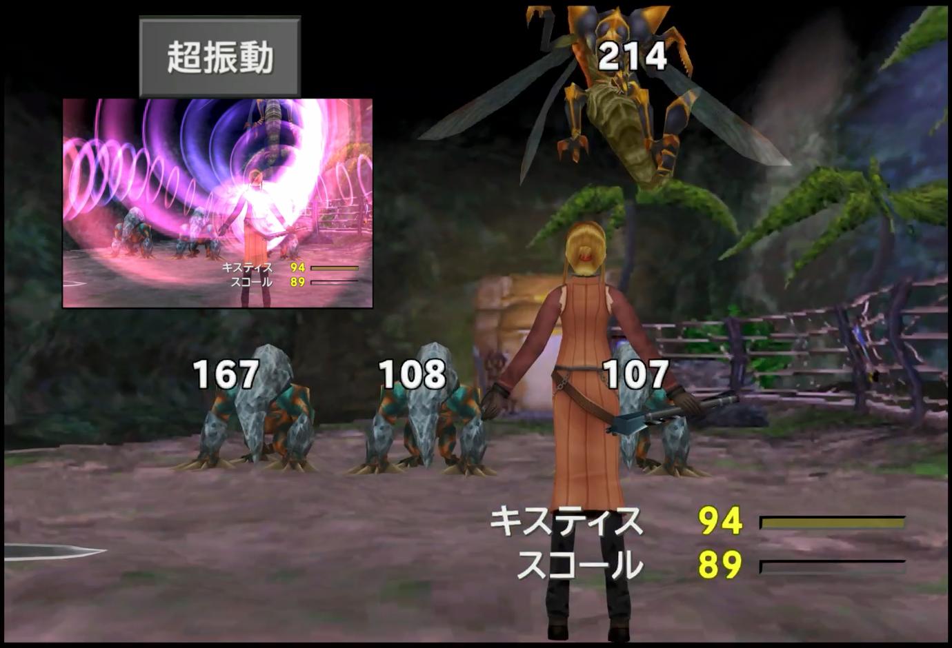 というわけで。ここまで進めて、ようやく、今回パートの最初のボスである「グラナルド+ラルド」戦がスタートする。グラナルドが蜂で、ラルドがアルマジロのほうだ。アルティミシア城でも雑魚敵として登場するが、その時とは違い、ボスとして登場した際には、専用ルーチンが組まれている。ちなみに、同じく「ラスダンで雑魚として再登場するボス敵」としては、オイルシッパーが存在し、謎にガーデン繋がりである。