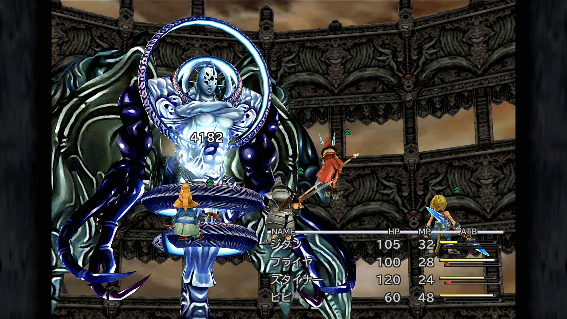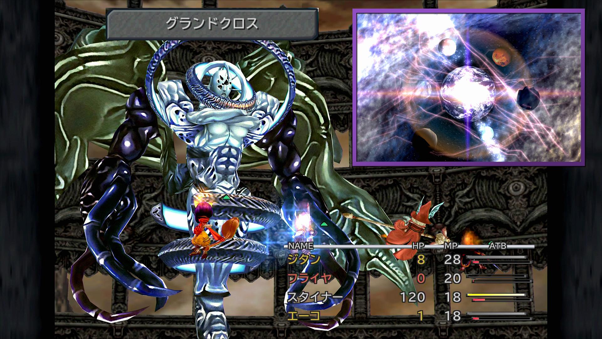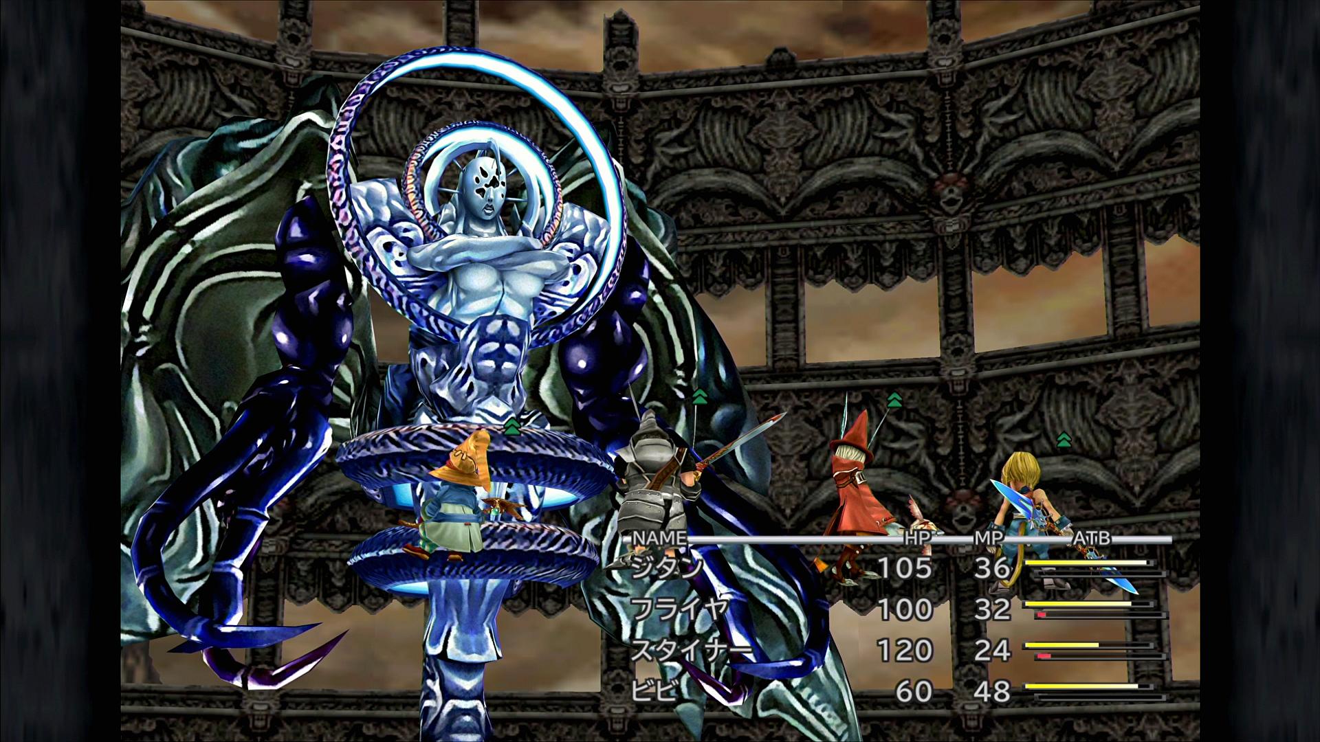 そして。ここまで、前段のトランス・クジャ戦も含めて、全てのスクリーンショットで、味方のATBゲージが黄色くなっており、▲マークが付いていることにも気付かれているだろう。そう、今回は、全員が「いつでもヘイスト」で加速をしていくのである。