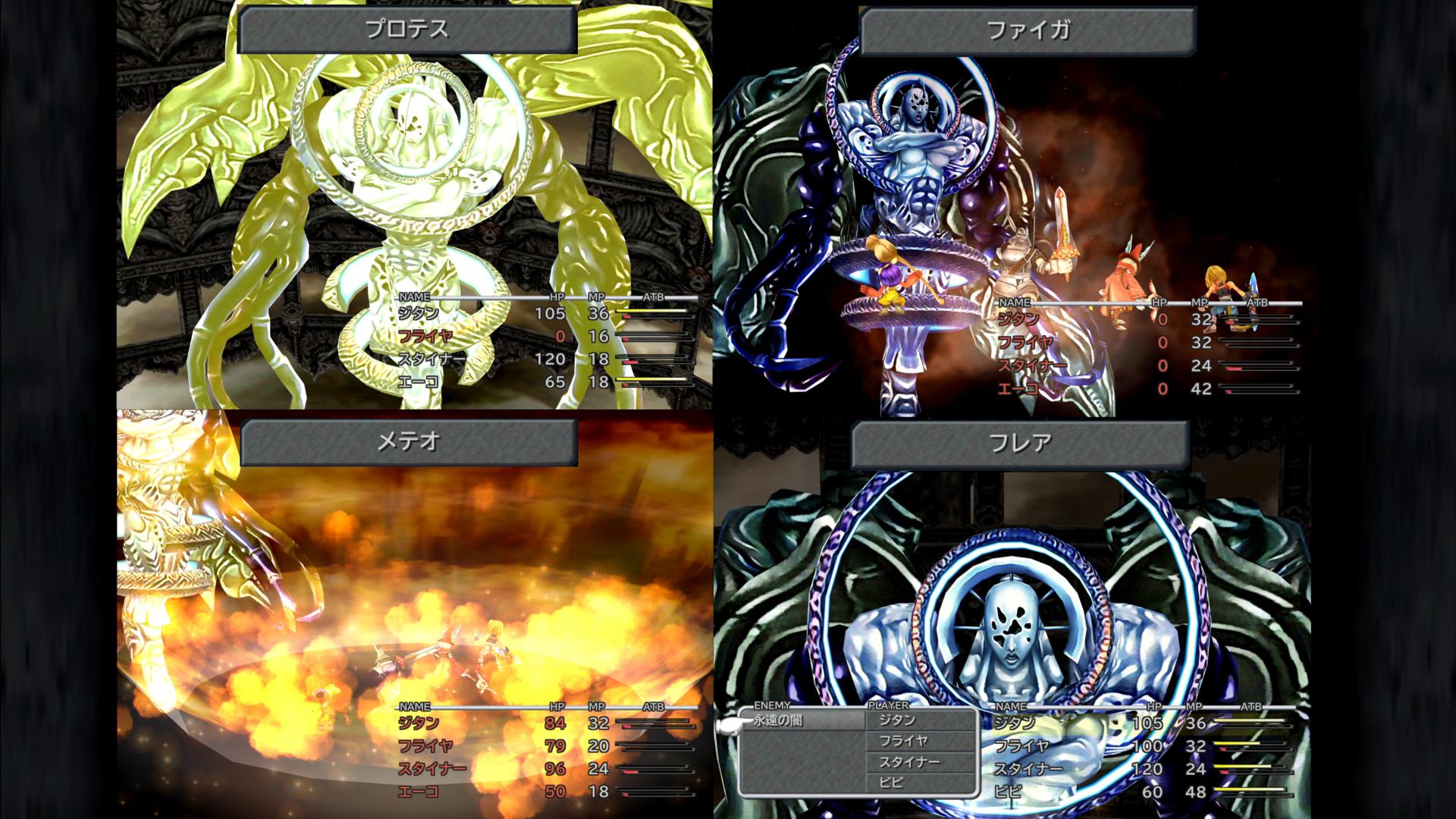 ――ということで、もう既にこの時点で頭がこんがらがってくるのだが、そのうえ、敵は「カウンター」と「自ターンの行動」に重複している部分があるため、事態は更に厄介である。いま使われたフレアスターが、カウンターなのか、敵自ターンでの行動なのか、分からないのだ。よって、確実に勝つためには、敵味方のATBゲージを意識し、行動を1人ずつ入力して、カウンターが来るか来ないかで、その後の行動を決めていく…という戦い方が必要となる。