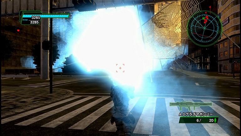 ・・・「A3プラズマボンバー」は、2000ダメージ・爆破範囲30mという超性能のロケットランチャー(参考:スティングレイM99は1200ダメージ・範囲15m)であるが、「最装填に大型の設備を必要とするため、戦場でのリロードは行えない」という設定を持つ弾数限定武器であり、その弾数は20発である。一般に、爆発物が必要となるミッションの特性と弾数制限の性質がイマイチかみ合わないため、同じく弾数制限のある「フュージョンブラスター」系に比べて「プラズマボンバー」の使用場面は限られるが、それでも爆発系武器としては類を見ない強力さから、要所要所で活用できることだろう。