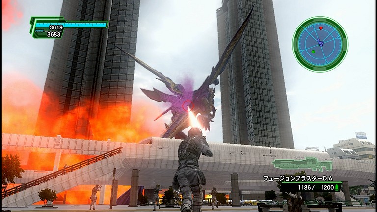 ――と、いうことで。「AF100」と「フュージョンブラスターDA」を持ち込み、雑魚のドラゴンをAF100でなぎ倒したあと、大型が現れたらフュージョンブラスターで倒し、残った小型をAF100で始末する。これで終わりである。このミッションは終盤としてはあんまりな難易度で、すぐ始められてすぐ止められるため、武器稼ぎにもよく使われるステージだったりする。助けに来てくれてありがとう、神竜巡査!