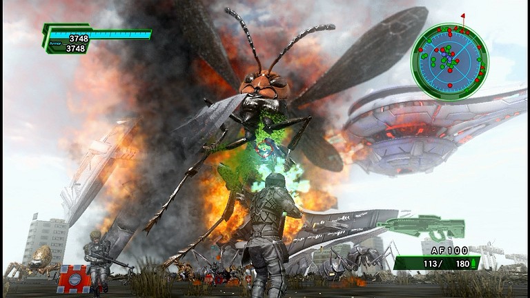 ――そんなこんなで、砲台・ドラゴンを牽制しながらしばらく戦っていると、味方の精鋭部隊が続々と到着し、一気に難易度が下がってくれる。最初から来い。そこまで来ればもう死ぬ要素は皆無であるため、残ったアースイーターを全て撃墜し、アイテムを回収してブレインを攻撃。そして射撃を続け、いよいよブレインを撃破する。これで、「地球防衛軍4」のINFERNOクリアーに成功であるっ!!