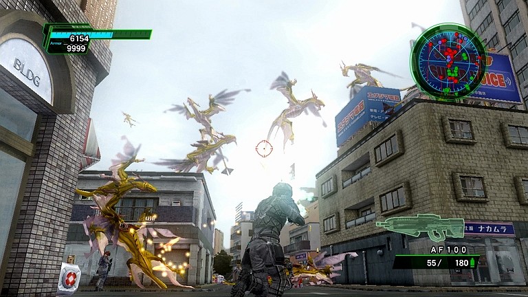 お次のミッションでは、ビル街の広場に地下トンネルの出口が3つ展開されている。それだけなら普通なのであるが、その陣を大量のヘクトル・レタリウス が囲い込んでおり、しかも女王蟻 まで存在する始末である。もちろん、巣穴から出現する巨大生物自体も決して少なくない。ということで、例によって真正面から挑むと失敗確定 であるため、何らかの策を練らなければならない。すなわち、「@高火力兵器で瞬殺を狙う」 か、または「A距離を取って地道に戦う」 か、である。