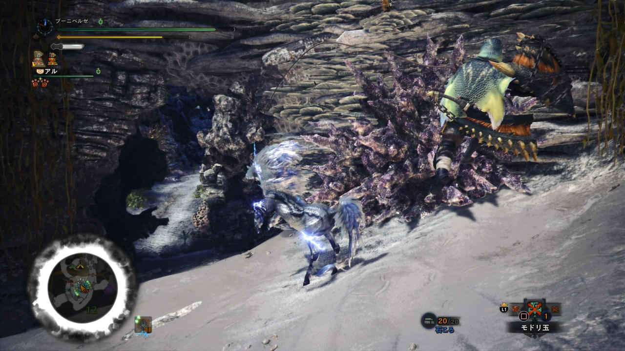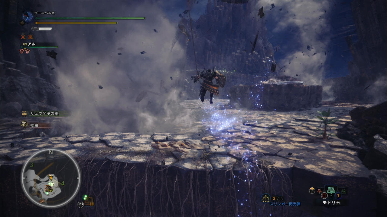 ――さらに、敵は竜巻を設置するという新たな技を習得している。これは、グラフィック的にはマップのあちこちで嵐が発生するというPS4の性能を活かした派手なものとなっているが、良いのは見た目だけであり、内容は悲惨そのものである。竜巻は何個でも設置され、持続時間が長いため、非常に戦闘の邪魔になるうえに、狭い通路などで発生させられると最悪の場合は脱出不能になることもある。また、敵はこの竜巻の影響を一切受けないため、倒れ込んだのが風の中でせっかくの攻撃チャンスが無駄になったり、こちらからは一切攻撃できず一方的にブレスを放たれたりと、ストレス極まる展開が頻発する。敵が最後に逃げ込む巣のエリアなど、酷い時は敵が竜巻の中で寝ているといった怪奇現象まで発生する始末だ。