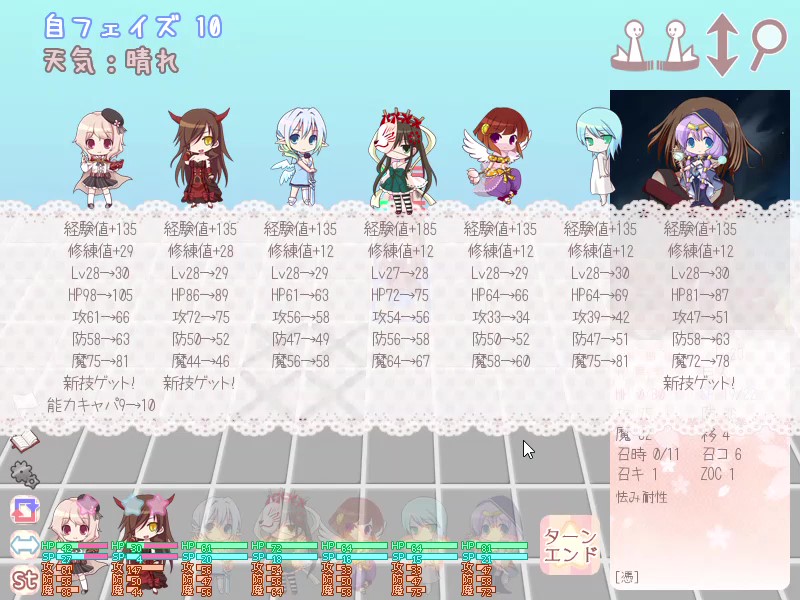 SPの消費が大きいため、特性に「SP回復」をセットして毎ターン1ずつ回復させています。
