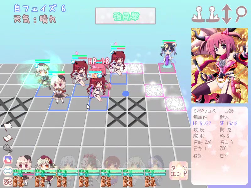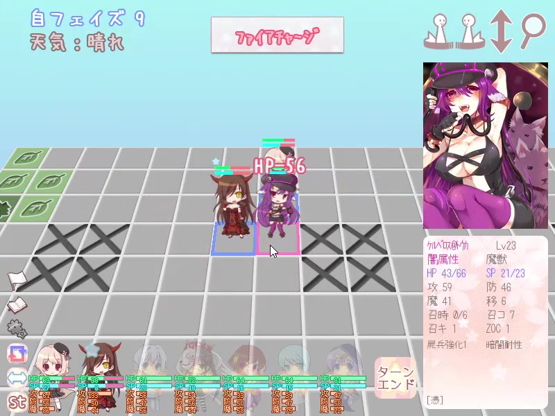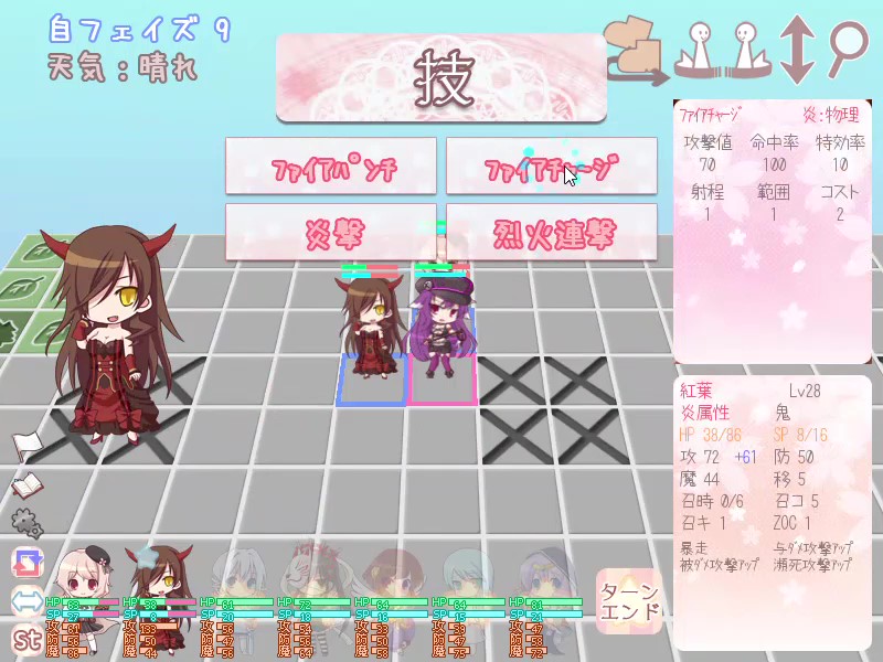 敵はトウカのみ、数が少ない分、全滅する危険は少ないですが、こちらの手数も少ないため、「12ターン以内撃破」という条件が重くのしかかります。