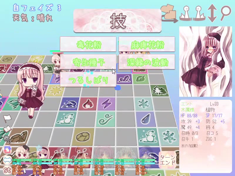 イルセはHP82あり、このターンは耐えられそう。次のターンにトドメを刺せば大丈夫と言っているとエントが癒しの実で回復させました。・・・が、