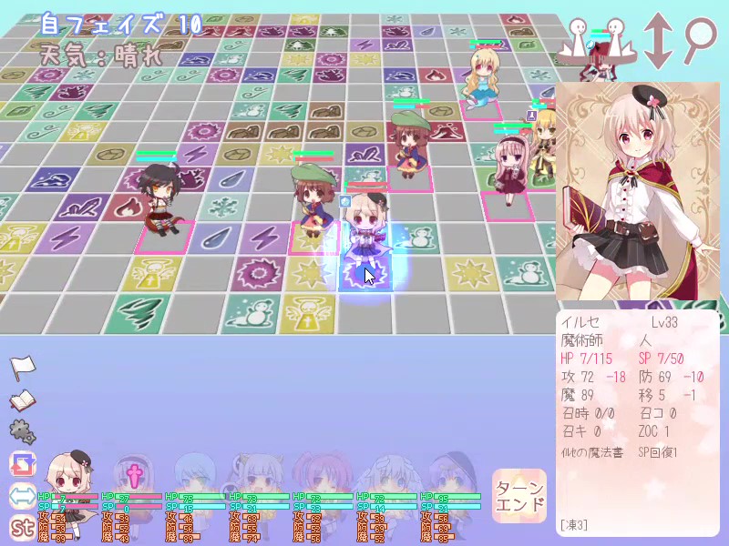 フェイズ3(〜1分12秒):インプを召喚し、2体で攻撃。イルセは敵移動を先読みし、左側へ移動。