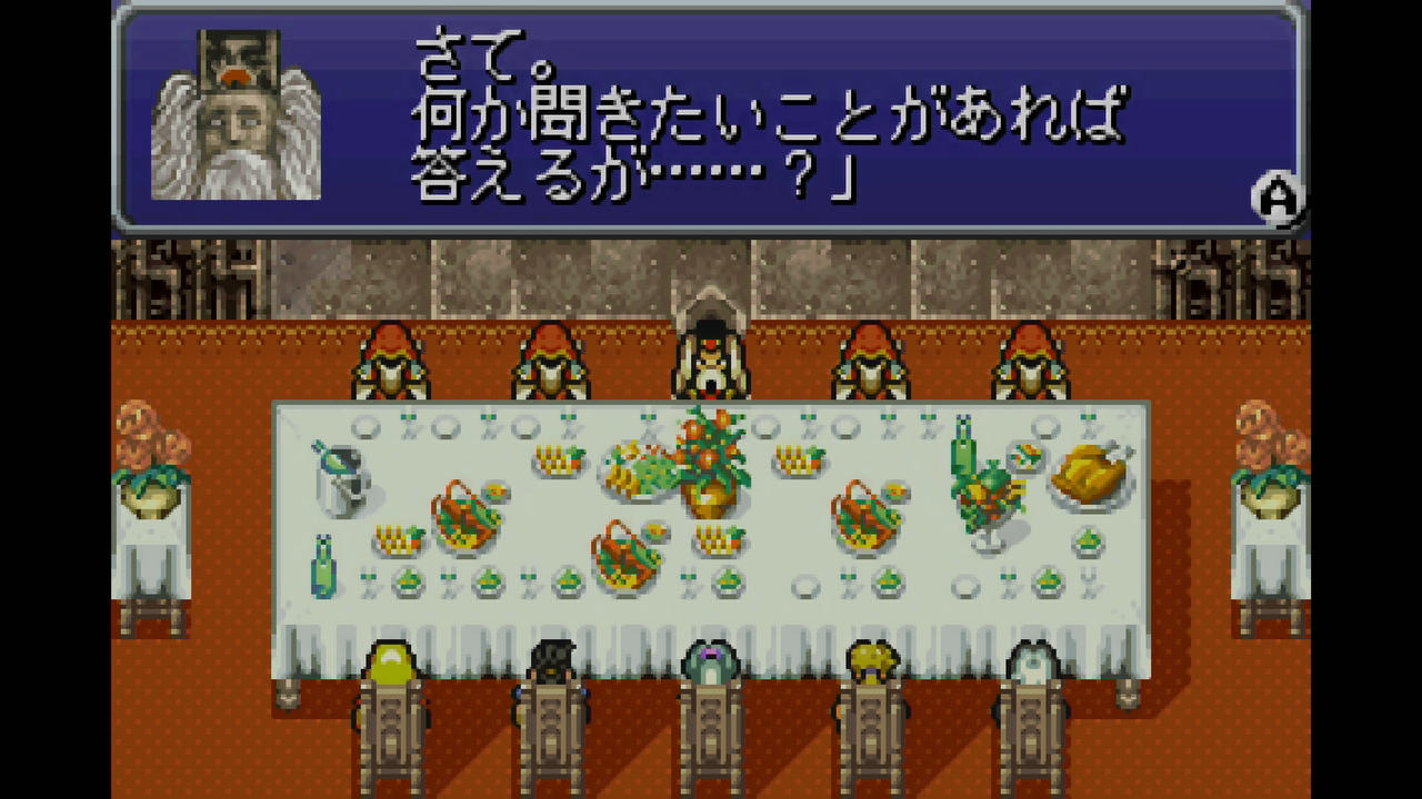 ――最後に。会食前半の4分間で話しかけられる兵士とは、このタイミングでもその大半が残っており、ケフカのアルテマバスターごっこもこのタイミングなら自由に見ることができる。ただし、24人の兵士のうち、戦闘が発生する4人の姿は綺麗さっぱり消滅したりもする。個人的には、左側中腹の部屋の、トイレに立てこもって和平に反対していた兵士のその後が気になるところである。干されたのか、それとも水に流れていったのか…。
